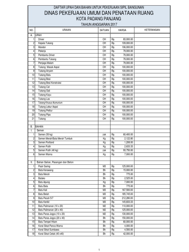 Daftar Harga Satuan Bahan Dan Upah 2021 Sumatera Utara Sumber : mendaftarini.blogspot.com